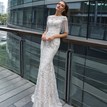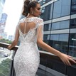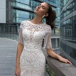 Nádherné svadobné šaty Dina, z dielne značky Crystal Design, majú po celej svojej dĺžke očarujúcu trblietavú textúru, ktorá vyniká na husto zapracovanej čipke. Zaujímavým prvkom sú hojdajúce sa krátke rukávy vyhotovené z trblietavých koráliek. Šaty sú dokonalým príkladom siluety trumpet, krásne lemujú a vyzdvihujú ženské krivky. Nakoľko sú pevné, oblečie si ich len dáma s naozaj štíhlou postavou. Zapínajú sa vzadu na malé gombíky a na zips. Svadobné šaty boli raz použité, profesionálne vyčistené a nevykazujú žiadne viditeľné známky opotrebovania. Sú výnimočné :) Chybička: zažltnuté miesta na dekolte a lemoch rukávov z vnútornej strany šiat, čo nijako neovplyvňuje celkový vzhľad týchto krásnych šiat.