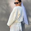 Hebký svadobný kabátik z umelej kožušinky viete krásne skombinovať so všetkými štýlmi svadobných šiat. Má jemný smotanový odtieň, dĺžku po pás a široké 3/4 rukávy. Je ľahký, pohodlný, v prednej časti si ho môžete zapnúť na zdobený háčik.