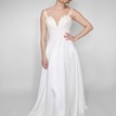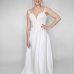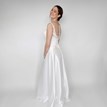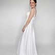Dominantou svadobných šiat Arianna, z dielne značky ARIA, je priliehavý živôtik bez rukávov. Je ozdobený husto zapracovanou čipkou, ktorú dopĺňajú perličky a transparentné korálky s trblietavým efektom. Živôtik má srdiečkový výstrih, vnútorné košíčky a jeho vrchnú časť vypĺňa telový tyl. Sukňa z matného taftu je nariasená, hladká, svojou nezdobenou textúrou vkusne dopĺňa zdobený vršok. Pridaním kruhovej spodnice si ju viete pekne nadvihnúť. Šaty sú celkovo ľahučké, zapínajú sa vzadu kombináciou zipsu a radom pekných gombíkov. Boli raz použité, sú úplne ako nové.