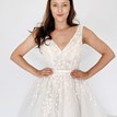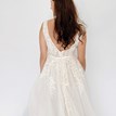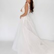 Ak hľadáte jednoduché línie, jemný dizajn a nenápadnú romantiku, svadobné šaty Ellie pre vás môžu byť zaujímavou voľbou. Elegantne zapracovaná kvetinková čipka na živôtiku plynule prechádza do nadýchanej tylovej sukne s dlhou noblesnou vlečkou. V-výstrihy vpredu aj na chrbte pôsobia decentne a vkusne, tenký opasok pekne zvýrazňuje siluetu. Šaty majú jemný odtieň off-white, sú pohodlné, ľahké, zapínajú sa jednoducho na zips. Vlečka na šatách sa nedá vypnúť, šikovná krajčírka to však vie jednoducho vyriešiť.
