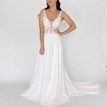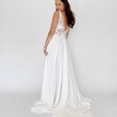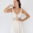 Svadobné šaty Candice od značky Kotapska sú ľahučké, príjemné na nosenie a ako stvorené na svadbu v teplejších mesiacoch. Vrchný diel z tylu s čipkou s prírodným motívom pekne sadne, tvaruje postavu a hrubšie ramienka spolu s V-výstrihom vpredu aj vzadu zvýraznia dekolt. Sukňa je hladká, padavá a krásne splýva, pričom jemná vlečka šatám dodáva romantický nádych. Stále obľúbenejší odtieň off-white je univerzálny a vyzdvihne farbu vašej pokožky. Svadobné šatičky Candice sú ženské, prirodzené a pôsobia upravene bez zbytočnej okázalosti.