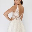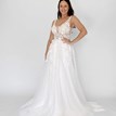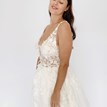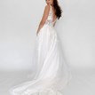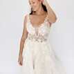 Svadobné šaty Candice od značky Kotapska sú ľahučké, príjemné na nosenie a ideálne na svadbu v teplejších mesiacoch. Vrchný diel z tylu s čipkou s prírodným motívom pekne sadne, tvaruje postavu a hrubšie ramienka spolu s V-výstrihom vpredu aj vzadu krásne zvýraznia dekolt. Tento model je obohatený o odopínateľnú, bohatú vrchnú sukňu, ktorá vytvára jemne princeznovský look. Sukňa je vrstvená, pokrytá rovnakou čipkou ako živôtik, čo vytvára zladený a ucelený vzhľad. Po odopnutí sukne sa odkryje hladká, padavá spodná vrstva s jemnou vlečkou. Odtieň off-white je univerzálny a prirodzene lichotí pleti. Candice sú ženské, elegantné a pôsobia vkusne bez zbytočnej okázalosti.