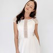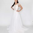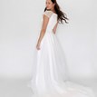 Svadobné šaty Priscilla od značky Kotapska sú dokonalým spojením ženskosti, elegancie a jemného boho štýlu. V nadčasovom odtieni off-white zaujmú svojou ženskou siluetou, ktorá krásne zvýrazní vašu postavu. Kombinácia hladkých textúr a prepracovanej jednoduchej čipky vytvára harmonický kontrast, ktorý pôsobí moderne a šik. Čipkovaný čepčekový rukáv dodáva šatám éterický nádych. Model Priscilla je v tomto prípade doplnený dlhou odopínateľnou sukňou, ktorá tento model boho svadobných šiat mení na klasickejší a romantickejší.