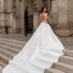 Svadobné šaty Stella sú stelesnením noblesy a nadčasovej elegancie. Celé sú ušité z luxusného, lesklého materiálu Mikado, ktorý pôsobí honosne, no zároveň je veľmi pohodlný na nosenie. Šaty sa zapínajú na praktický skrytý zips. Jemné perličkové detaily na živôtiku dodávajú šatám ženskosť a jemný lesk, zatiaľ čo perličkové zapínanie na chrbte krásne zvýrazňuje odhalený chrbát. A tá vlečka! Mimoriadne dlhá a pôsobivá, no praktická – vďaka úchytu na spodnej strane si ju nevesta ľahko chytí, keď potrebuje viac voľnosti. Ak hľadáte svadobné šaty, ktoré sú elegantné, no zároveň pohodlné, Stella vám dodá ten čarovný pocit, aký si každá nevesta zaslúži.