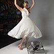Saténové šaty Brianna sú určené na letnú svadbu ako hlavný svadobný alebo popolnočný model. Majú zavinovací živôtik na viazanie, odhalenú chrbtovú časť, odnímateľný opasok a štýlovú plisovanú midi sukňu. Šaty sú podšité, zapínajú sa na skrytý zips....