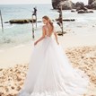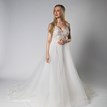 Romantické šaty Palmyra, od známej svadobnej značky Lanesta, majú čipkou a perličkami zdobený srdiečkový živôtik s vnútornými košíčkami a pohodlnú 6-vrstvovú sukňu s čipkovým lemom na zadnej, vlečkovej časti sukne. Vlečka je krásna, vznešená, ťahavá, nedá sa vypnúť. Dominantou šiat je chrbtová časť s prekríženými ramienkami a volánikmi, ktoré sú ozdobené trblietavými kamienkami. Súčasťou týchto svadobných šiat je aj šikovná spodnica, ktorá zabezpečuje plný objem sukne a zabraňuje tak nechcenému presvitaniu priehľadných tylových vrstiev. Tento svadobný model je kvalitne vypracovaný, má krásne romantické aj ženské detaily a je pripravený pre svoju prvú nevestu :)