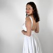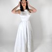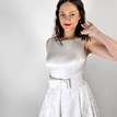 Elegantné svadobné šaty Bretta, z dielne značky Ariamo Collection, môžu byť zaujímavé pre dámy, ktoré majú radi jednoduchý štýl doplnený o zaujímavé detaily. Ponúkaný model má decentný lodičkový živôtik, ktorý vás vo svojej zadnej časti prekvapí hlbokým výstrihom. Pre niekoho môže byť odhalený chrbát možno trochu odvážny, no spolu so zadnými ramienkami vyzerá veľmi vkusne. Jednoduchý nezdobený živôtik dopĺňa skladaná brokátová sukňa s praktickými bočnými vreckami. Je príjemná, ľahká, dá sa v nej veľmi pohodlne pohybovať aj vykrúcať. Pekným detailom je odopínateľný mašličkový opasok, ktorý si môžete na základe vlastného vkusu dopasovať.